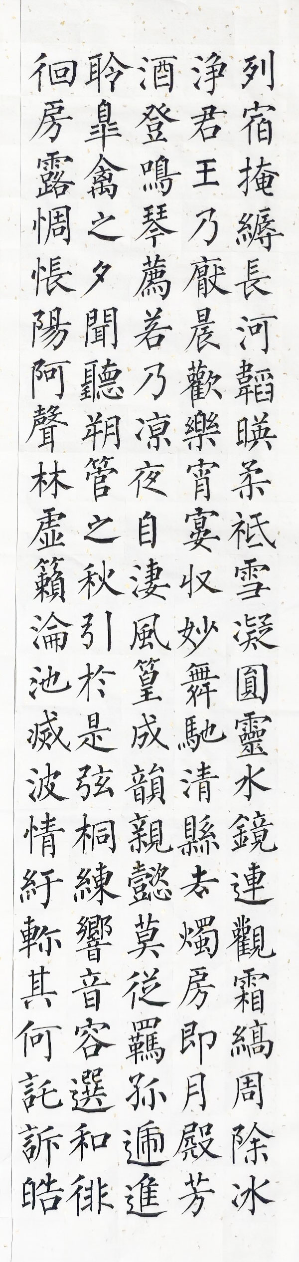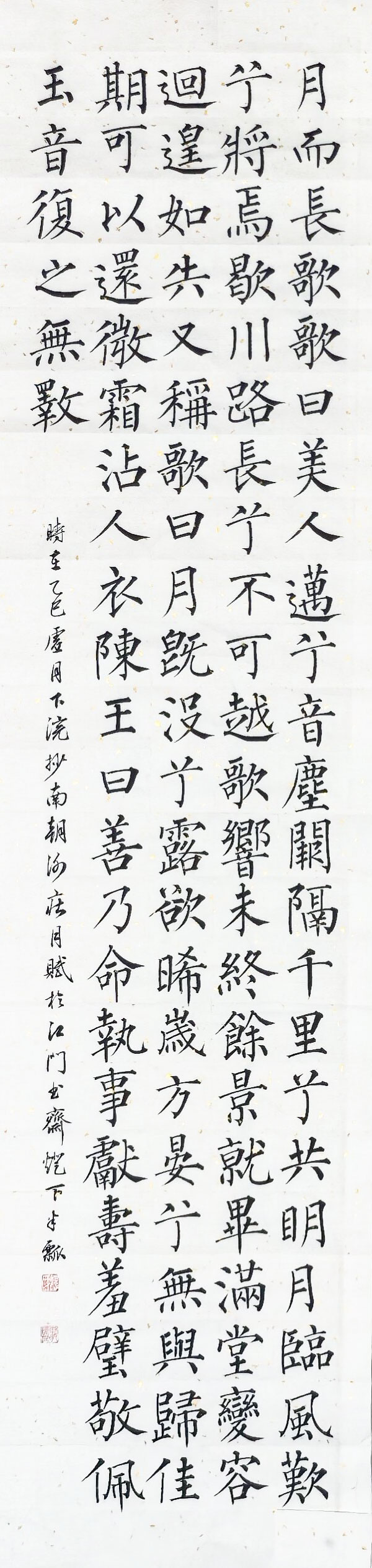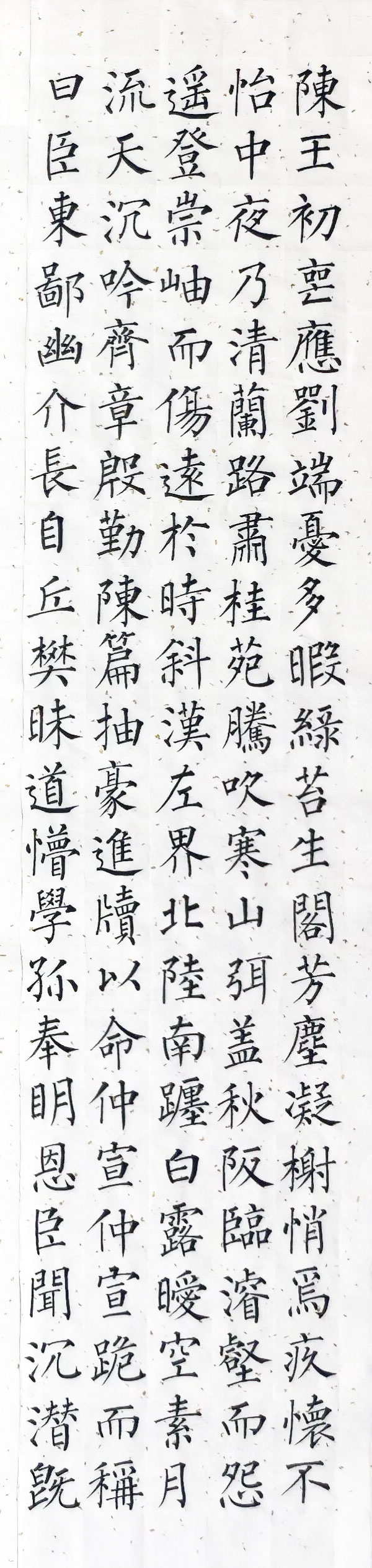 纵观整组作品,透露出一位当代书家对经典的敬畏与传承。在如今快节奏的时代背景下,魏炳惠先生能以如此耐心与定力,于乙巳年手录长篇《月赋》,不仅是对柳公权楷书艺术的一次成功礼赞,更是岭南书坛守正创新的生动实践。这四条屏不仅是文字的载体,更是一次关于力量、平衡与古典美学的深度对话,其清健的格调与高雅的气息,必将在观者心中留下久久的余韵。 |