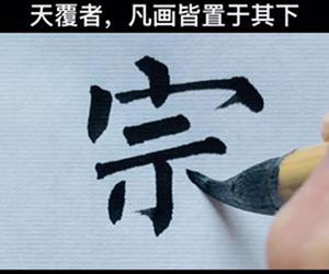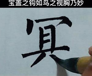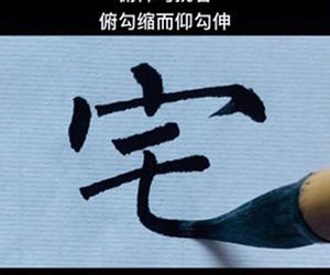 宝盖头下面那个向左的钩(如“写”、“宅”中的钩),写得像鸟儿低头看自己的胸部那样,才是最精妙的。