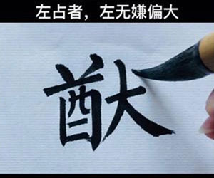 对于左边占据主要位置或比重较大的字,左边写得稍微大一些也无妨。