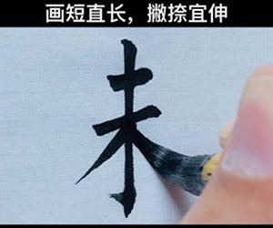 当字中横画较短而撇画较长时,横画可以再短些也无妨,撇画可以再长些也无妨。