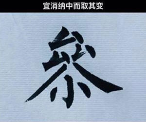 对于点画重复出现的字,应该让这些点画有偃(向下)、仰(向上)、向(相对)、背(相背)的变化,以追求字形的变化和生动。