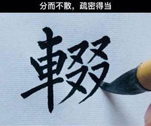 对于四个相同部件堆叠的字(如“㗊”、“燚”),四个部分要保持对称,分开而又不松散,疏密关系要处理得恰当。