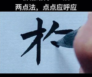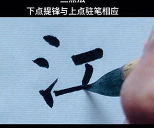 运用三个点画的字(如“氵”、“心”),最下面一个点的提笔锋芒应该与上面一个点的驻笔处(收笔处)互相呼应。