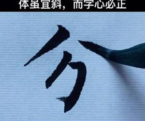 对于倾斜的竖画或勒画,不应该写得平直,平直了就会失去原有的气势。